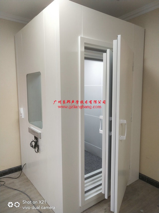 1醫用聽力篩查電測聽室,雙門雙墻外規格1.6*1.6*2.46m,環境噪聲小于55分貝室內小于25分貝。